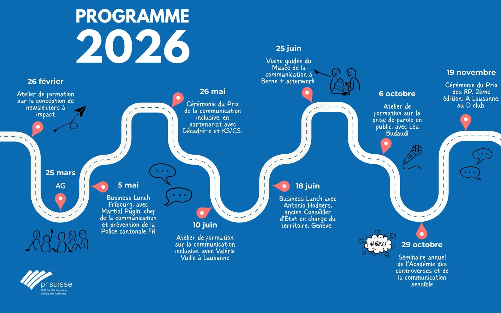 Prochaines étapes: faire comprendre nos métiers de RP (encore parfois associé à des gratte-papiers ou des pondeurs de communiqués de presse), proposer davantage d’ateliers de formation, créer plus de liens avec des milieux économiques et les praticien-nes de la communication en Suisse romande et au-delà, maintenir le prix des relations publiques, se tenir informé-es des nouvelles études en matière de communication stratégique, représenter les intérêts des membres.